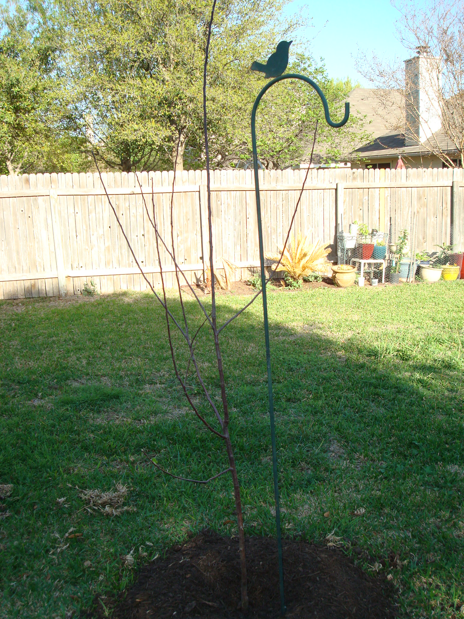I wanted a pear tree but my husband doesn’t love pears (what?!?!) so we compromised on an apple tree. I really wanted a pink lady apple tree but they didn’t have any! Oh well…seriously though it is going to be forever before any apples start falling from that tree!
