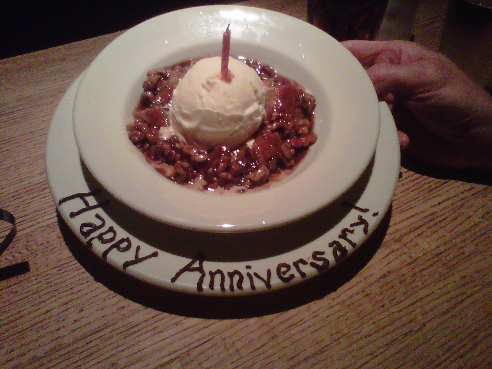 First of all, happy anniversary! That is so cute that you sit on the same side! We do that once in awhile, but most of the time we sit across from each other and play footsie ha ha