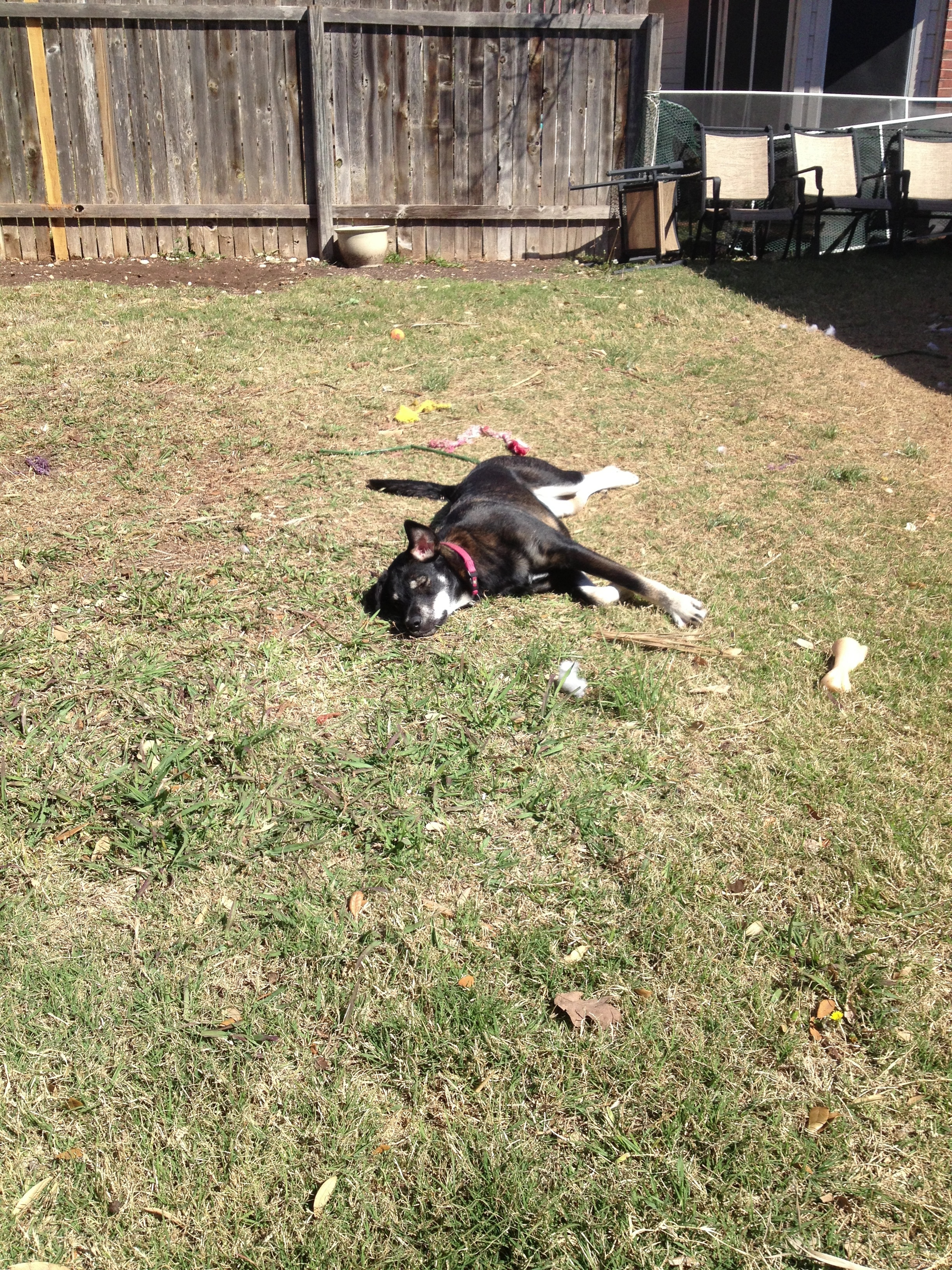We schedule weekly play dates for her and take her to day care three days a week. She definitely has her share of what Keith calls “doggy stimulation” and if that makes me a crazy dog mama then that makes me a crazy dog mama. I just can’t stand the idea of her sitting in our house all day long alone. And she only likes the backyard when someone is out there with her.