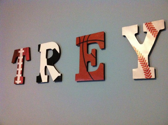 We are doing a sports theme nursery. I promise to show it all when it is completed but for now here’s a teaser. These are the letters I ordered off Etsy with his name!