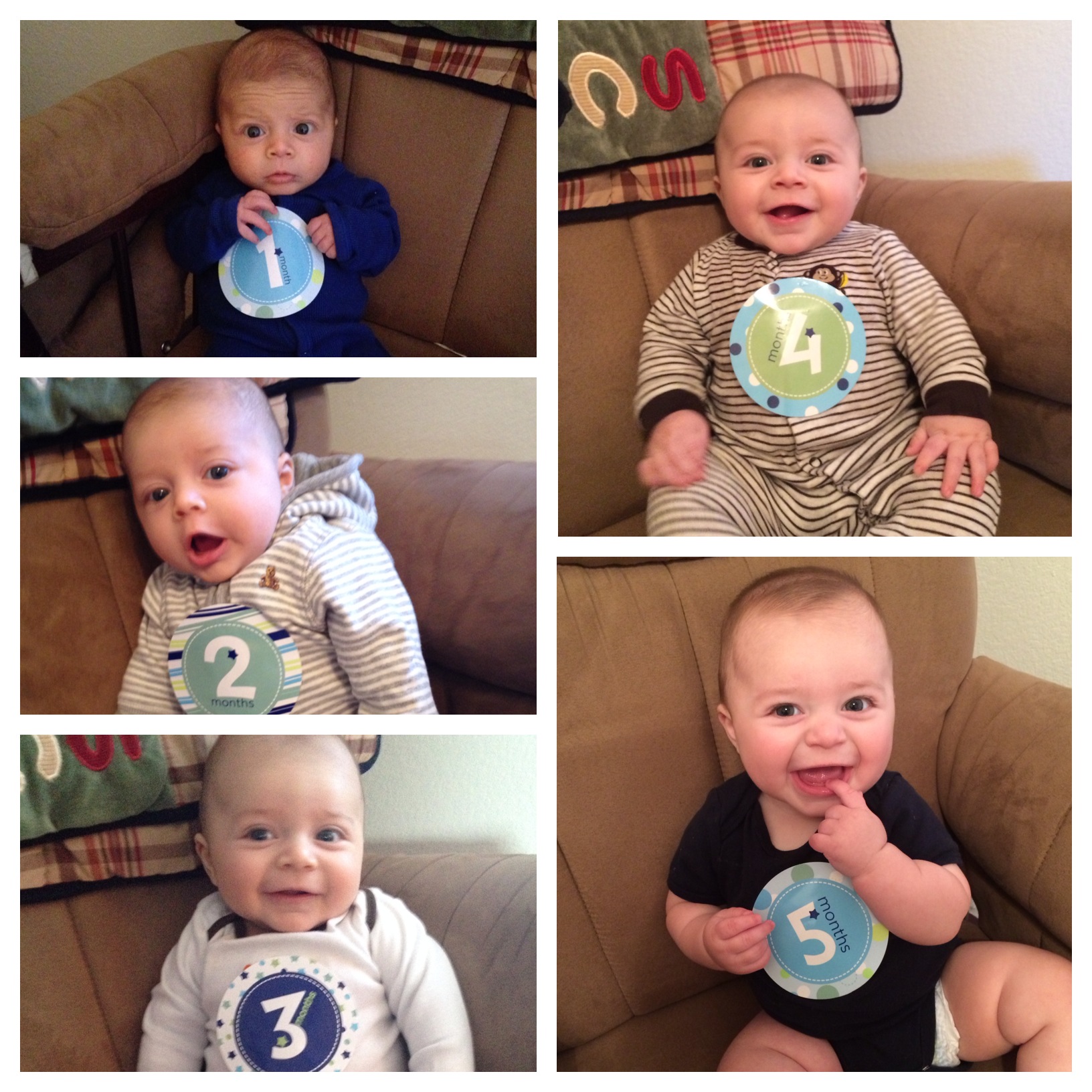 I swear time goes by so fast! Everyone warned me but sheesh…I can not believe it’s already been five months. Crazy! I also can’t believe how much he changes from month to month. I don’t notice it while it’s happening because I see him everyday but when I look at a collage like this it blows me away!