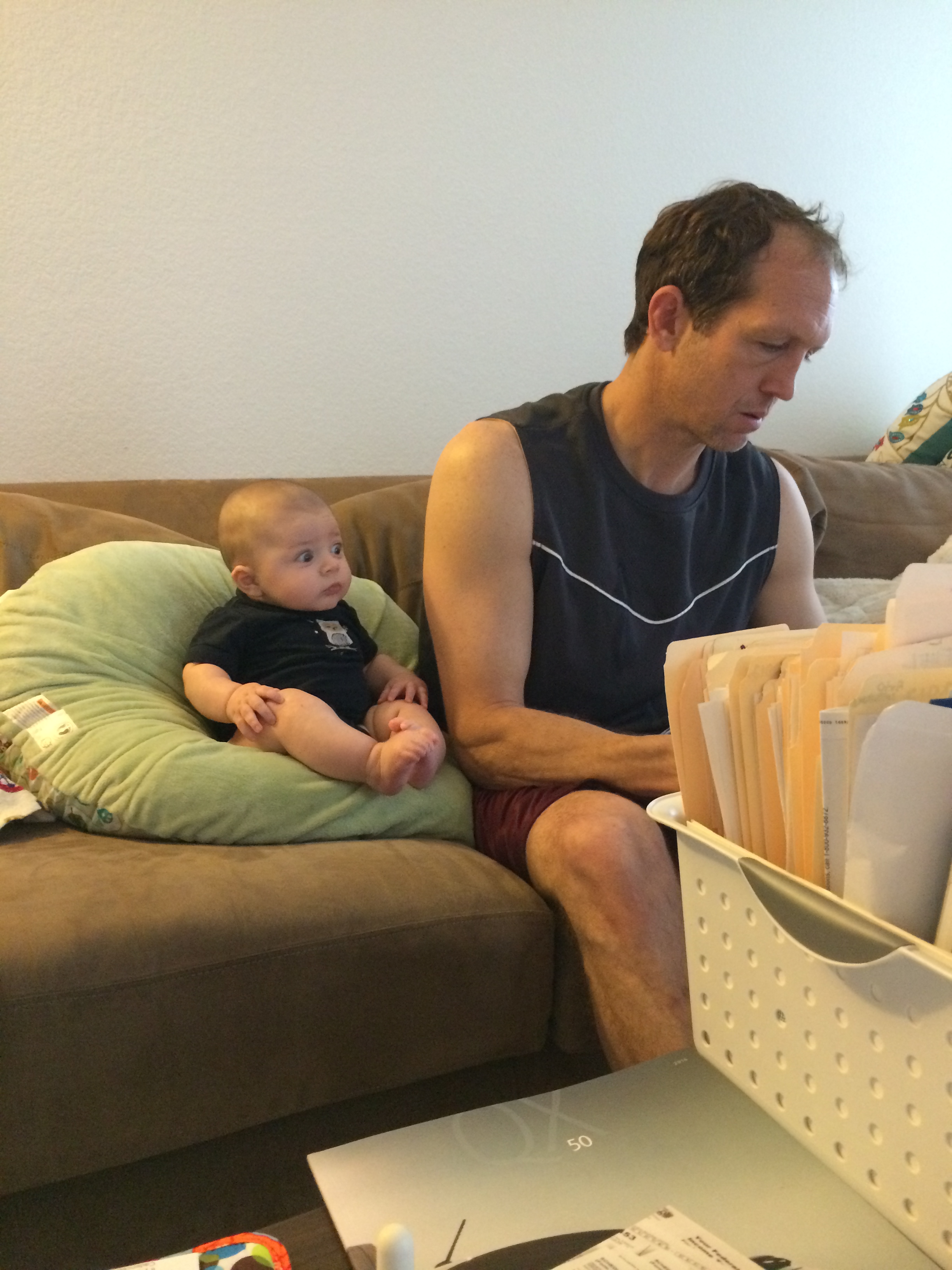 And just because I think this picture is awesome: Keith was working on our taxes this weekend and Trey was “helping”…ha! I wanted to say, “trust me buddy, my eyes get that big when working on taxes too.” 🙂